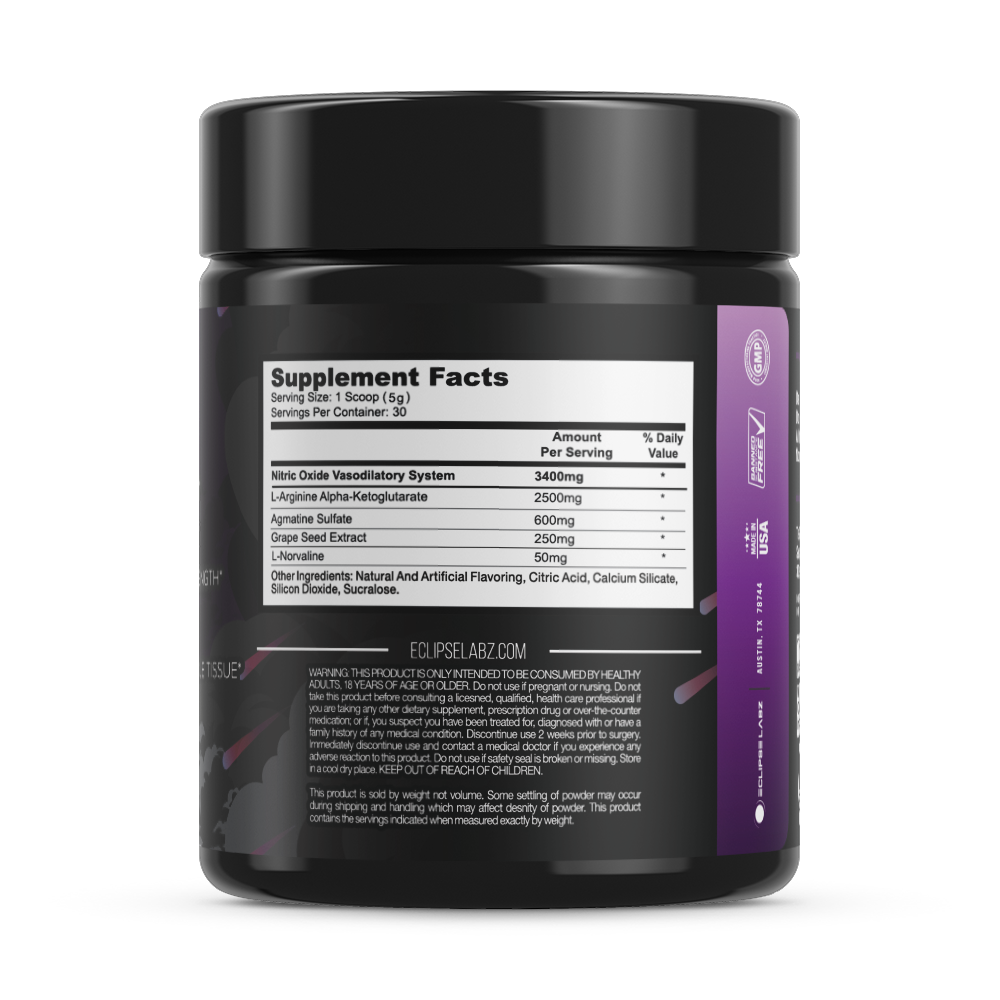 Dark Star uses a blend (Nitric Oxide Vasodilatory System) which targets blood flow, ATP production & oxygen delivery. The combination of these three elements yields more power for your workout, allowing you to go faster and longer!