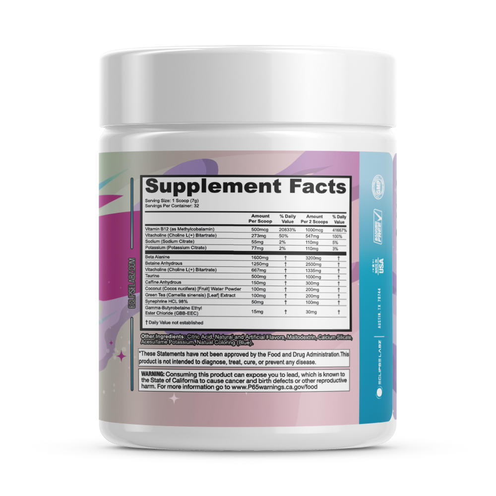 Nebula uses a solid multi-ingredient profile which targets hydration, mental focus, and increased energy! We use the following ingredients to improve your workout!